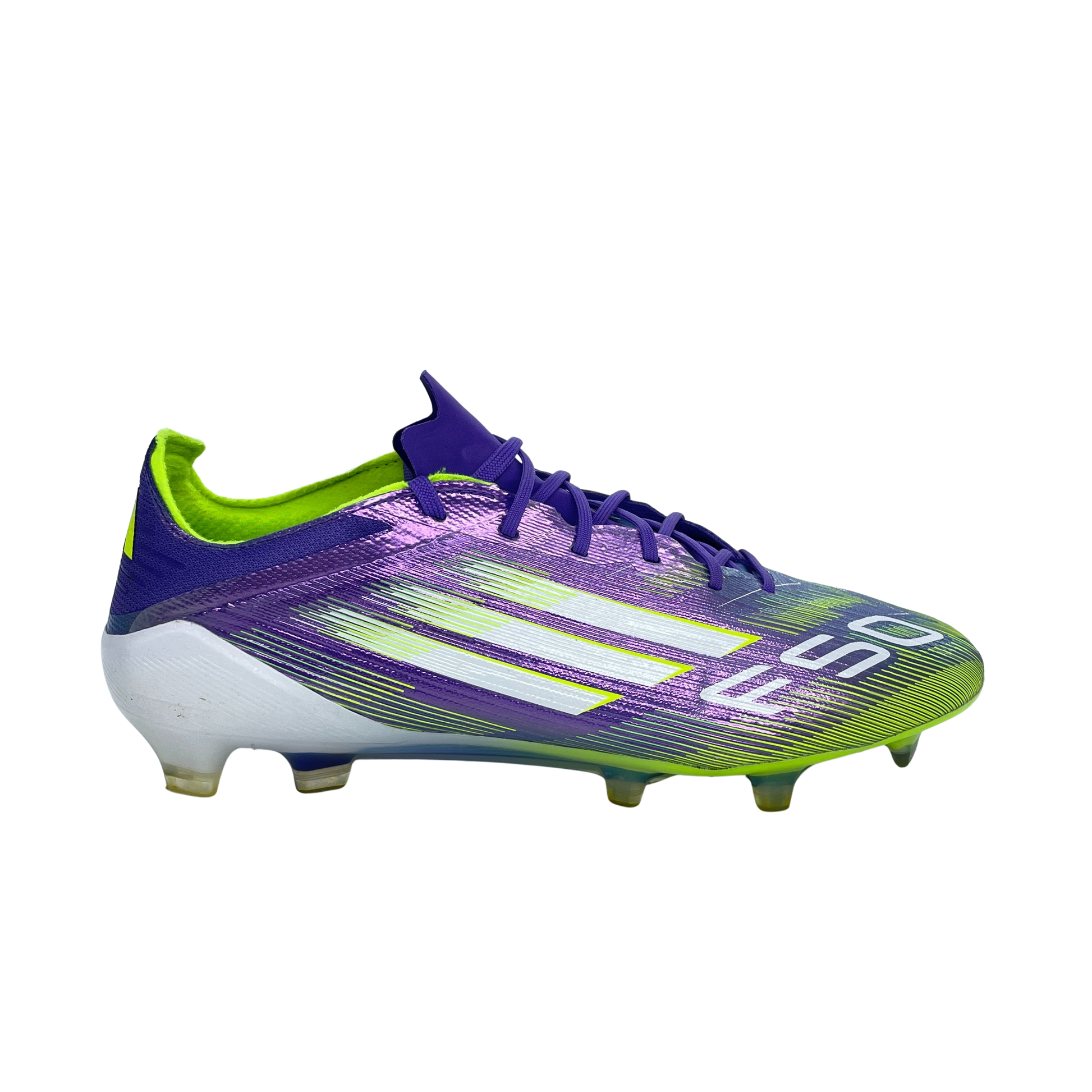 Design: Lila mit neongrünen und weißen Akzenten – klassischer F50-Look
